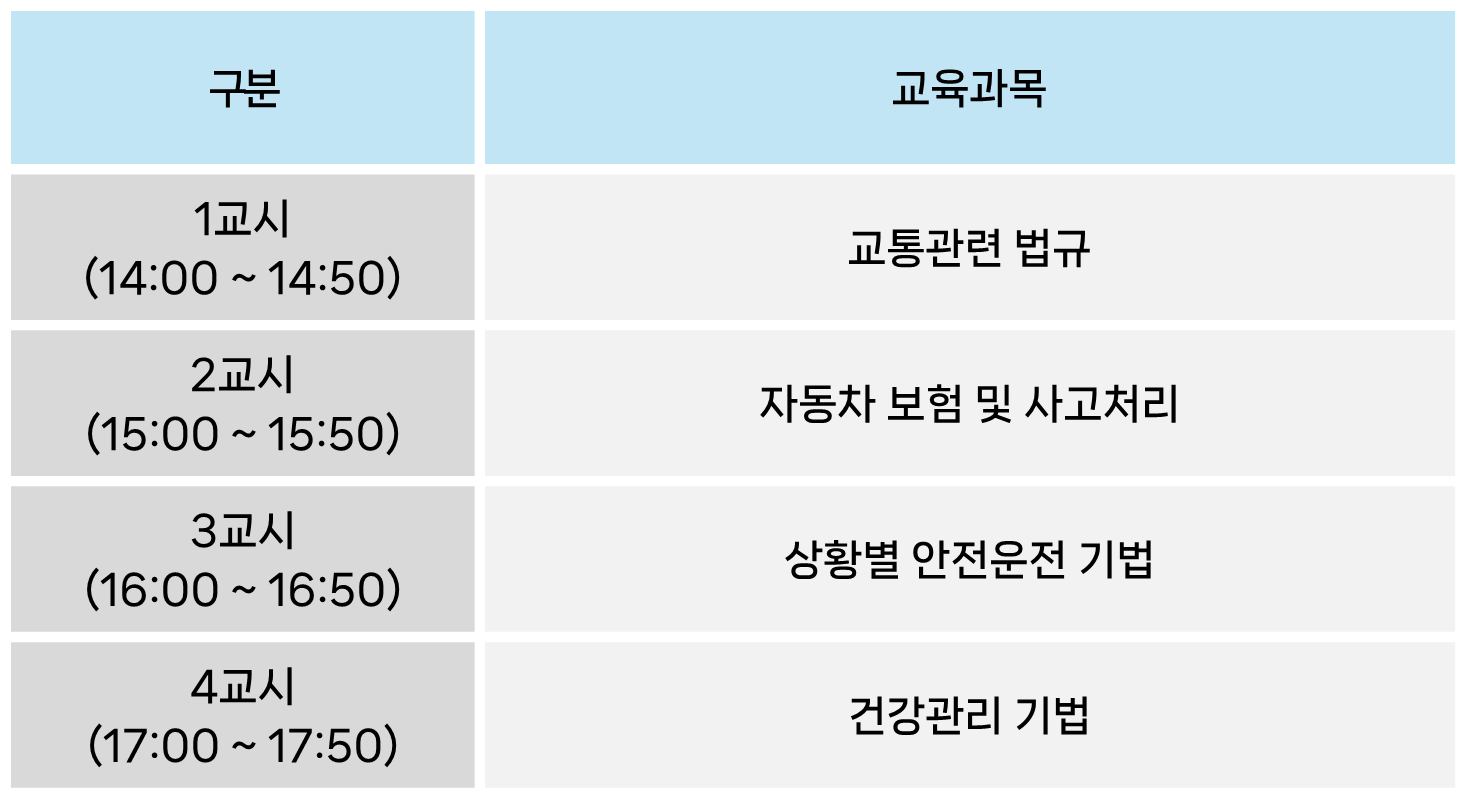 ☑ 신규교육 시간표※ 과목 강사 및 배정시간 등은 변동될 수 있음